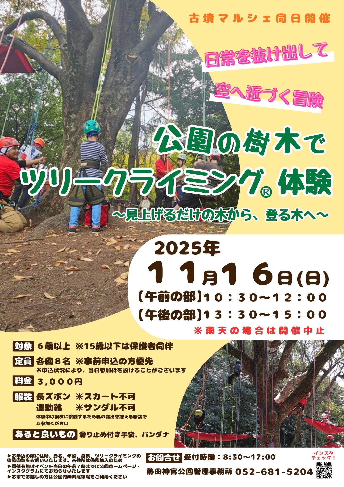 ※樹皮に触れたりする為、肌の露出を控えるようお願い致します。