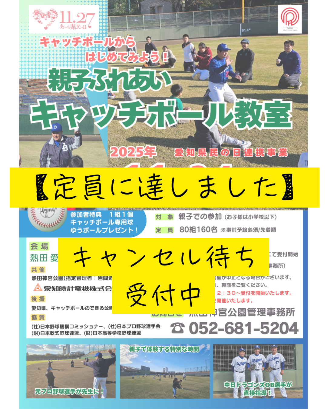 親子ふれあいキャッチボール教室【定員に達しました!】 Tweet 2025.10.29 親子ふれあいキャッチボール教室に たくさんのお申し込みありがとうございます! 定員に達しましたので、 キャンセル待ちのみ受付を行っています。 よろしくお願いいたします😊
