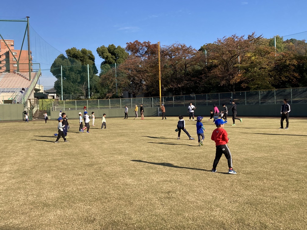 秋のぽかぽか陽気の中、親子ふれあいキャッチボール教室が開催されました。